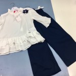 Per le femminucce invece abiti bon ton a fiori blu su fondo panna, gonne a righe abbinate con mini giacchini in jeans, abiti con gonne a “funghetto” con sottogonna in tulle. Tante classiche righe da marinaresco con slogan o applicazioni abbinate a jeans chiari e con applicazioni, maxi abiti con richiami allo stile navy dai colori che vanno dal bianco al blu con alcuni tocchi di rosso.